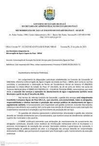 A prefeitura foi informada oficialmente através do oficio circular N°: 132/2025/SEAD-PI/GAB/SUPARC/MRAE, datado de 25 de julho de 2025.